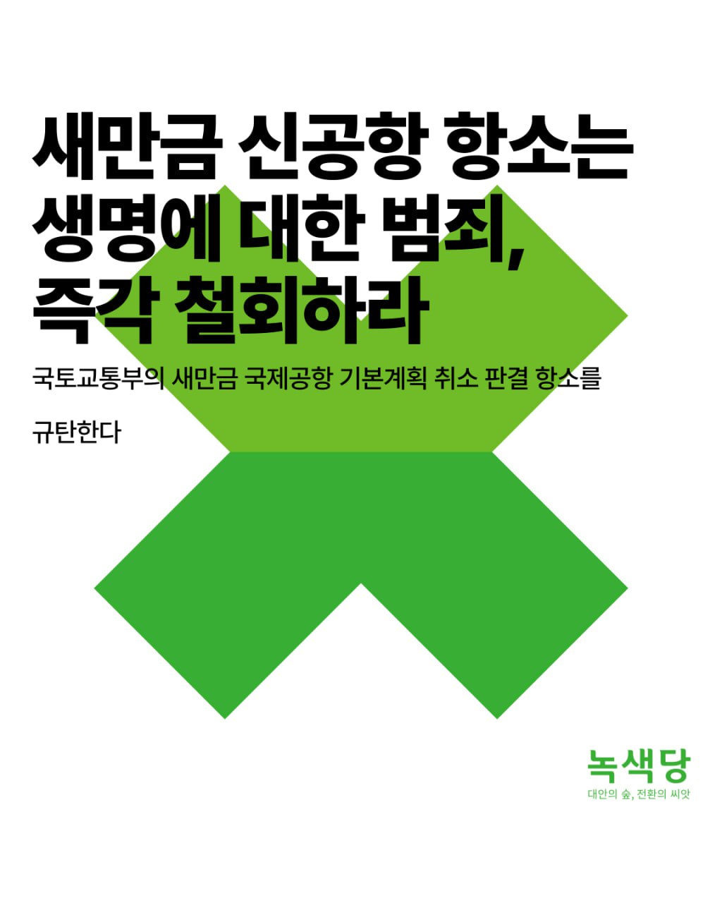 - 국토교통부의 새만금 국제공항 기본계획 취소 판결 항소를 규탄한다